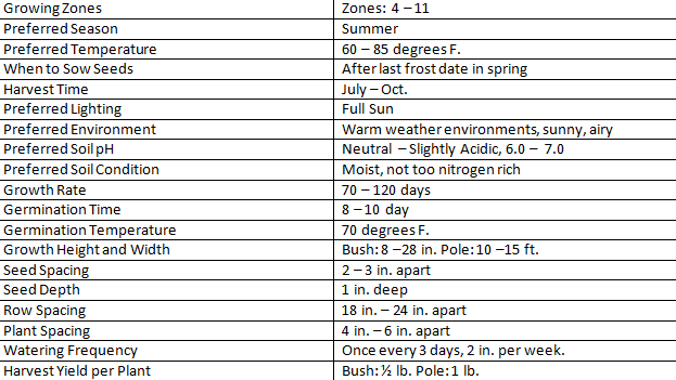 Dried beans are planted in early spring, a few weeks after the last frost. For bush beans plant seeds an in. deep, 4 in. apart, in rows 2 ft. apart. For pole beans plant a group of seeds, typically 3 – 4, around a vertical pole for support. Water often and consistently. Keep the area weed free. Beans make their own nitrogen and are pretty drought tolerant once established. Fertilizers are only necessary if the plants turn yellow or look pitiful. When it is necessary to feed the plants extra nutrients, chose a fertilizer that is low in nitrogen.
