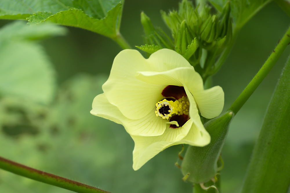A month before your last expected frost date, start seeds indoors under a grow light, or outdoors covered with a row cover or tunnel. After all threats of frost have past, okra can be planted by seed outdoors as long as temperatures remain over 65 degrees F. Plant in a full sun location and use a sandy, loamy, soil that is rich in compost. When using containers make sure they are well-draining. After seedlings are 4 – 6 inches tall, separate them so each plant has a good foot of space around it. If you’re planting a taller, larger plant variety, separate them 2 – 3 feet apart. Provide mulch covering with straw, to increase moisture levels in the soil, to improve temperature consistency, and to eliminate weeds. Use a fertilizer with a, 10 nitrogen – 10 phosphorous – 10 potassium mixture, about once a month.  Water often and consistently, especially in warmer months.
